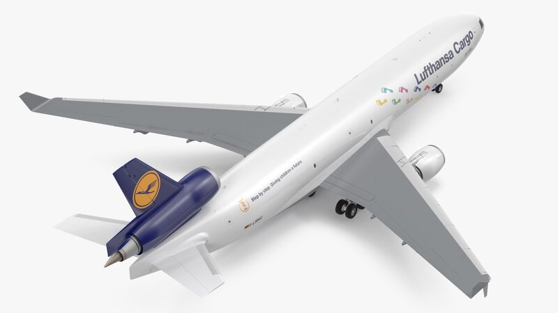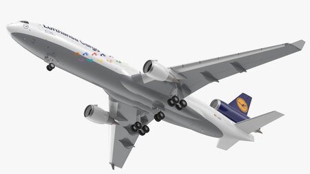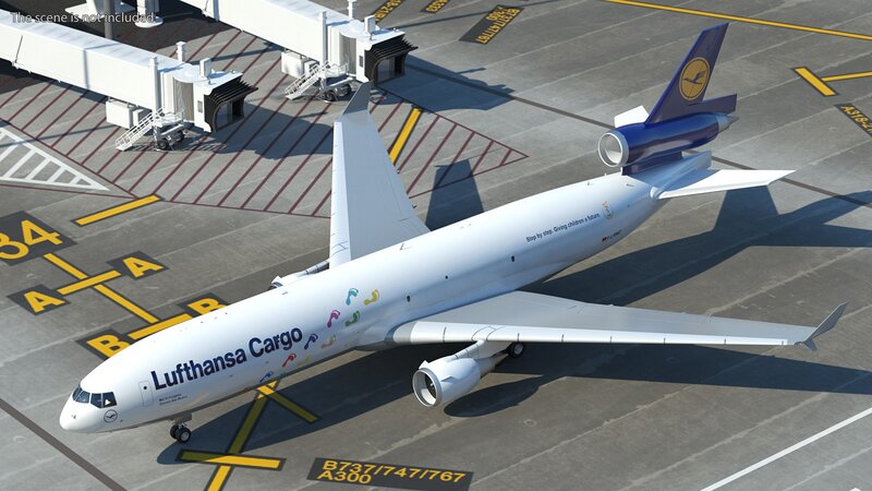 McDonnell Douglas MD11 Tri Jet Airliner Lufthansa Cargo 3d model is ready to be animated. You can easily position it the way you need or animate it the way your project requires using helpers in 3D Studio Max.