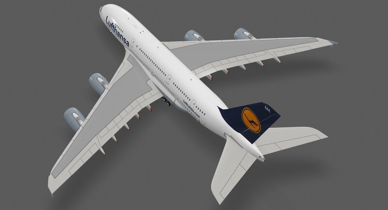 - Detailed 3d model of the Airbus A380-800 in Lufthansa paint scheme.-