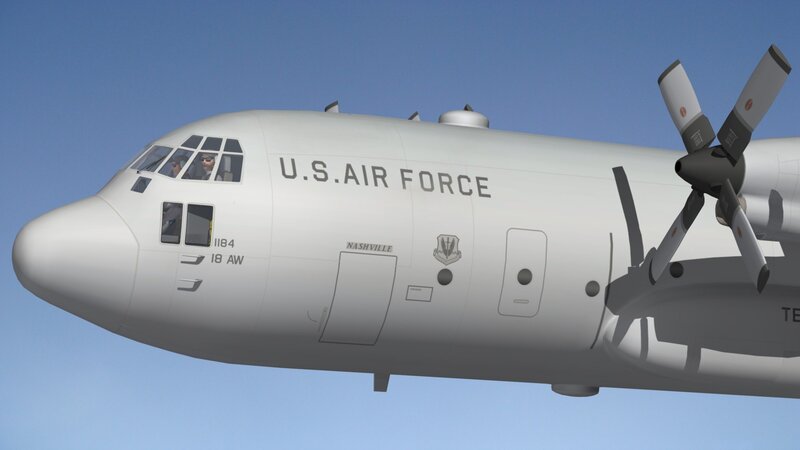 Selecting the object named "C130H" (parents). Change the size, position and rotation of the whole.