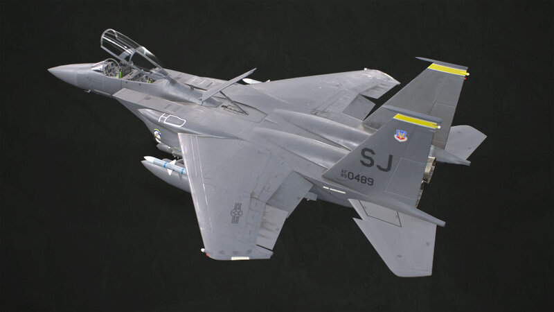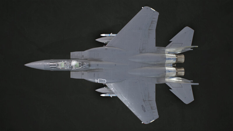 3D model of a McDonnell Douglas F-15E Strike Eagle with PBR textures. The model is low poly (39.931 Tris), game-ready and ready to animate (not animated):