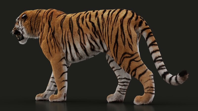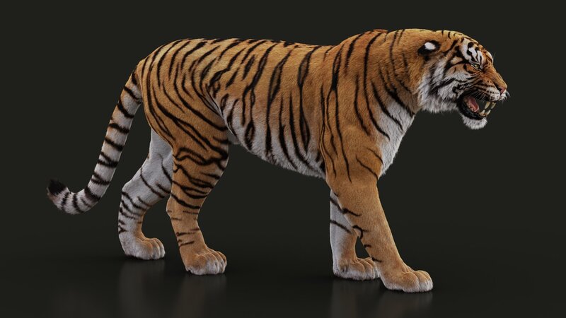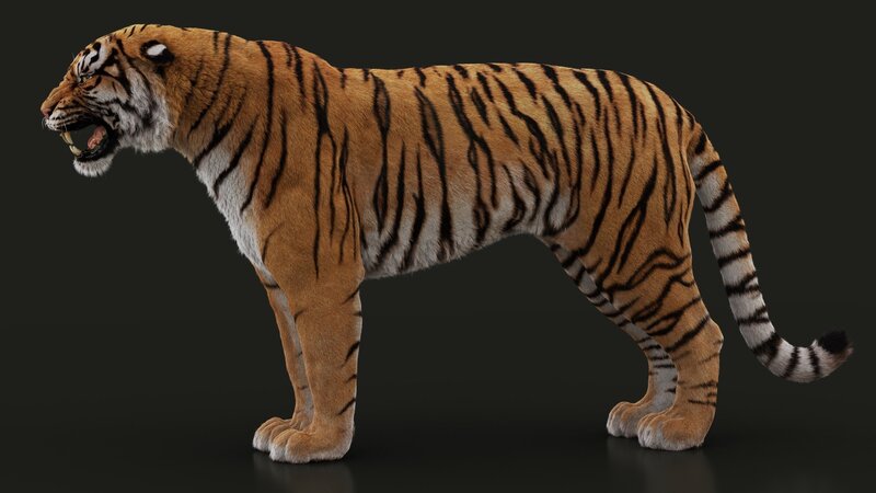 High Detailed Photorealistic Bengal Tiger; UVunwrapped and smoothable, made with Maya. Shave and a haircut for hair.