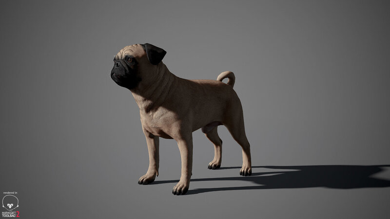 Realistic Pug Dog Real-Time Game-Ready 3D Model