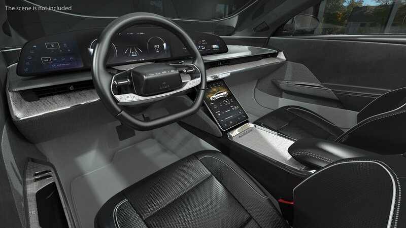 Electric Luxury Sedan Lucid Air with detailed interior. Doors can be opened.