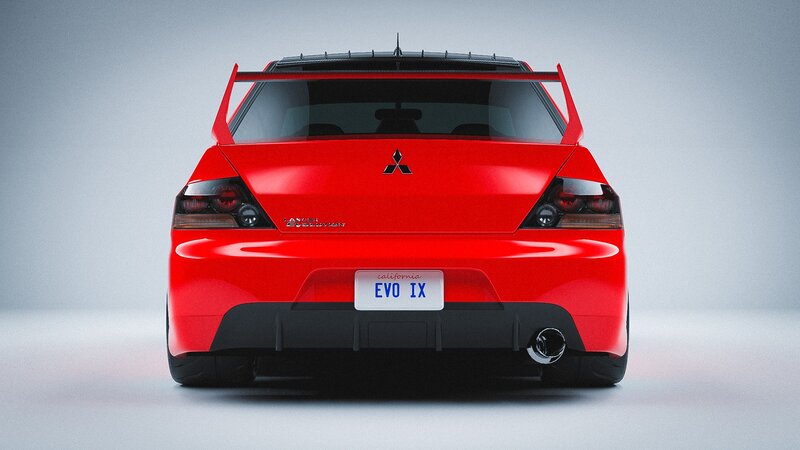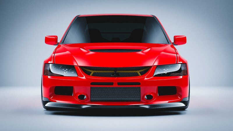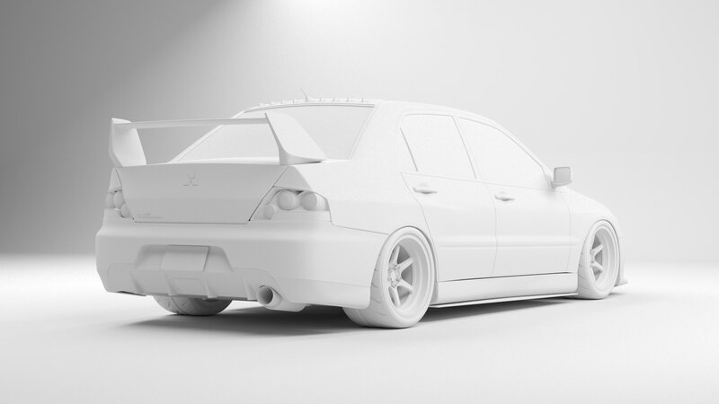 3D model of the Mitsubishi evo 9 with cosmis XT-006R wheels and toyo tires