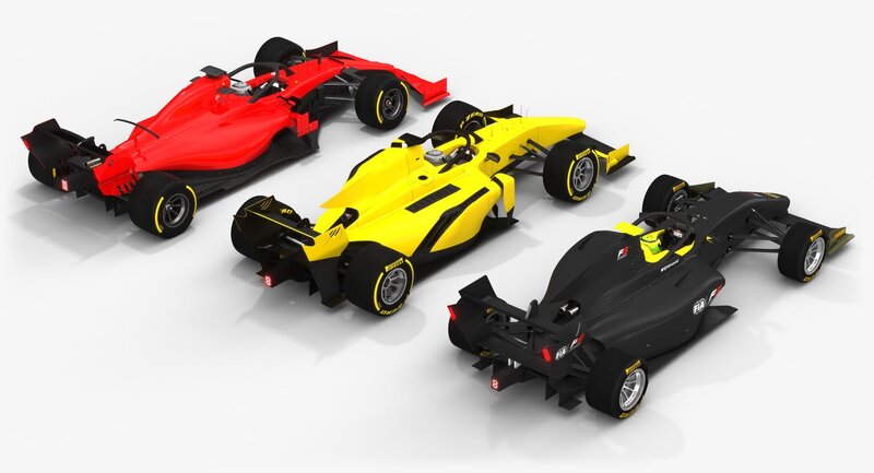 Collection of 3 low-poly subdivision-ready 3D models of Formula race cars (F1, F2, F3) Season 2019 with PBR materials (Specular and Metallic workflows):