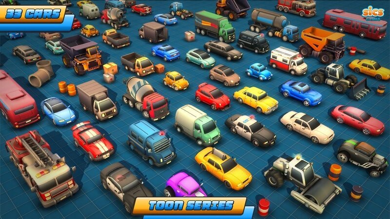 A complete package, containing 33 stylized car models, perfect for your project. Ideal for racing simulators, city management games, and any driving related project. For performance reasons and with mobile devices in mind, the models use a tiny 128*128 color texture and a 128*4 toon ramp. All models have a low poly count, ranging from 100 triangles for the simplest models, to 5K triangles for the more complex ones. Moving parts are separated so they can be animated.