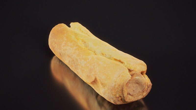 Photorealistic 3D Scanned Baked Goods Item: Hot Dog