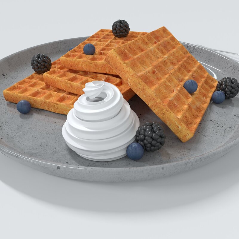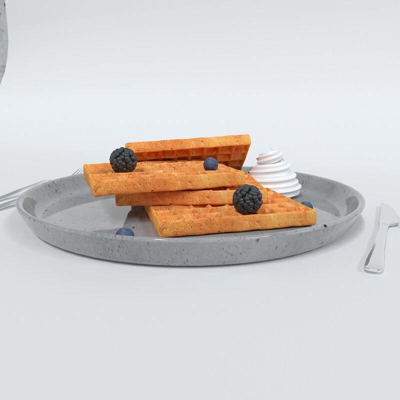 Model is suitable for breakfast scenes, patisserie scenes and also for cafe bars or restaurants if you need some waffle to make a pleasant atmosphere.