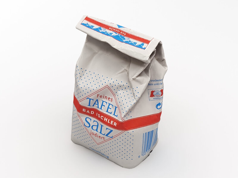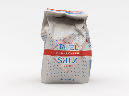 A DETAILED 3D MODEL OF A BAG OF SALT: