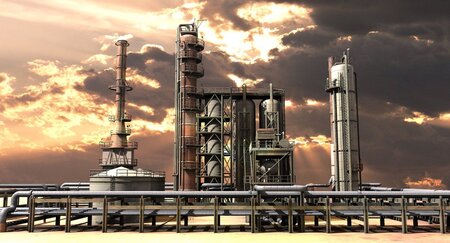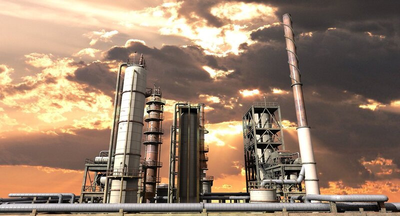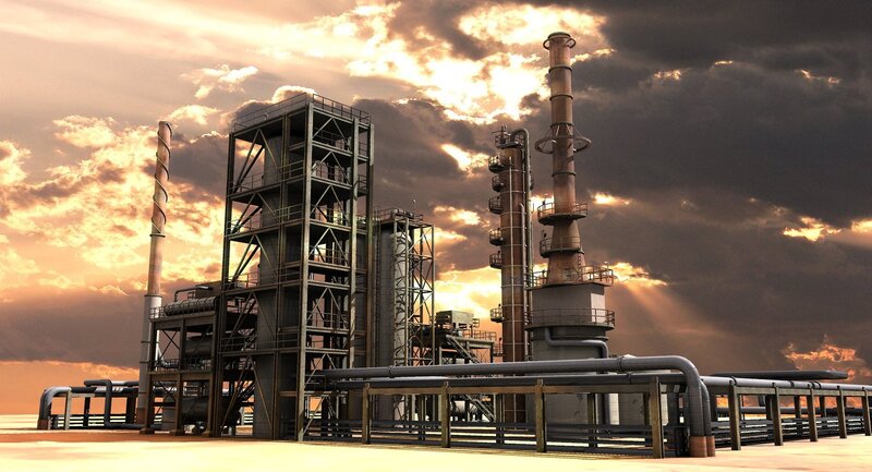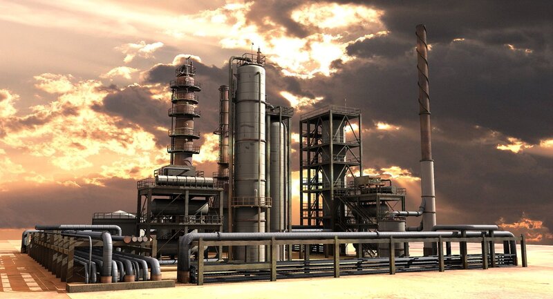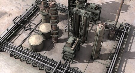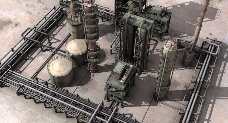 3d model of an oil refinery.Medium level of detail.