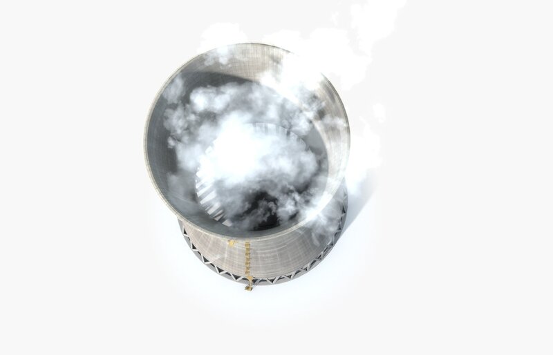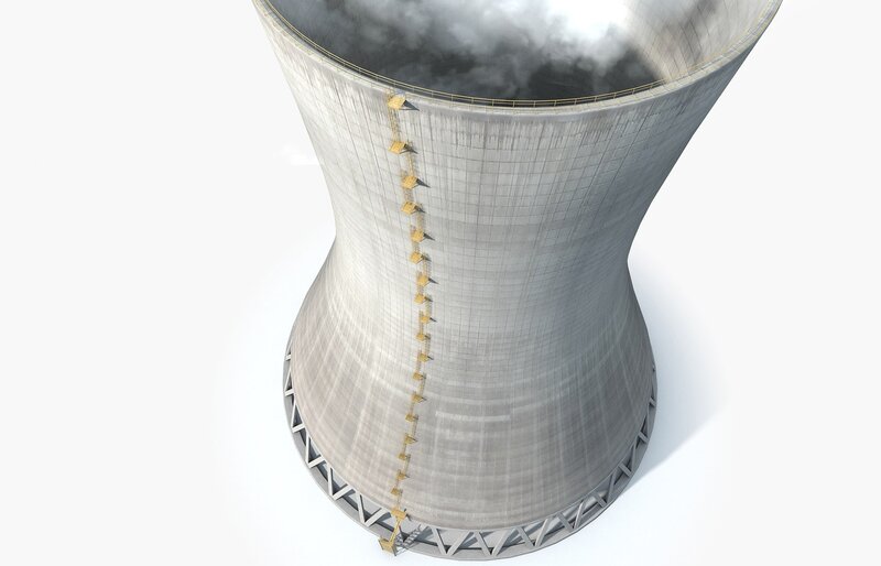 Cooling Tower With Steam Clouds 3D Model