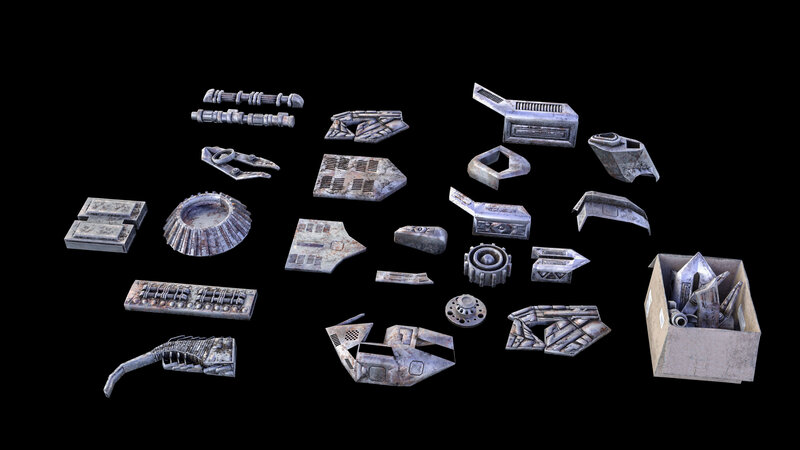 Each model has PBR textures (Albedo, Gloss, Roughness, AO, Displacement), and two texture sets, worn and dirty. The dirty texture set is the same as worn, but with dirt effects applied. The texture set on the images is the dirt set.