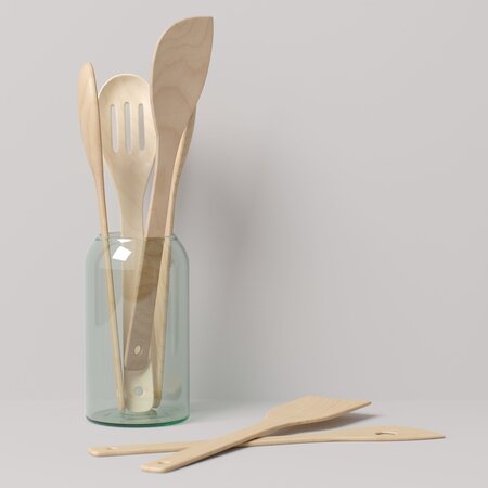 *This 3d model Decor Set 91 Rolled shelves, kitchen boards, oil bottles, spice jars, knives and spatulas in a vase has fully textured, detailed design that allows for close-up realistic renders. *