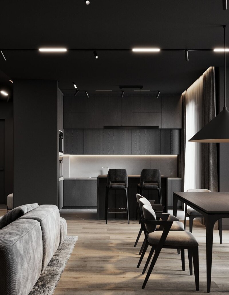Livingroom and kitchen Interior design style minimalism 3d max 2020 corona render 7 this room is a studio, where the living room and kitchen are located in one place