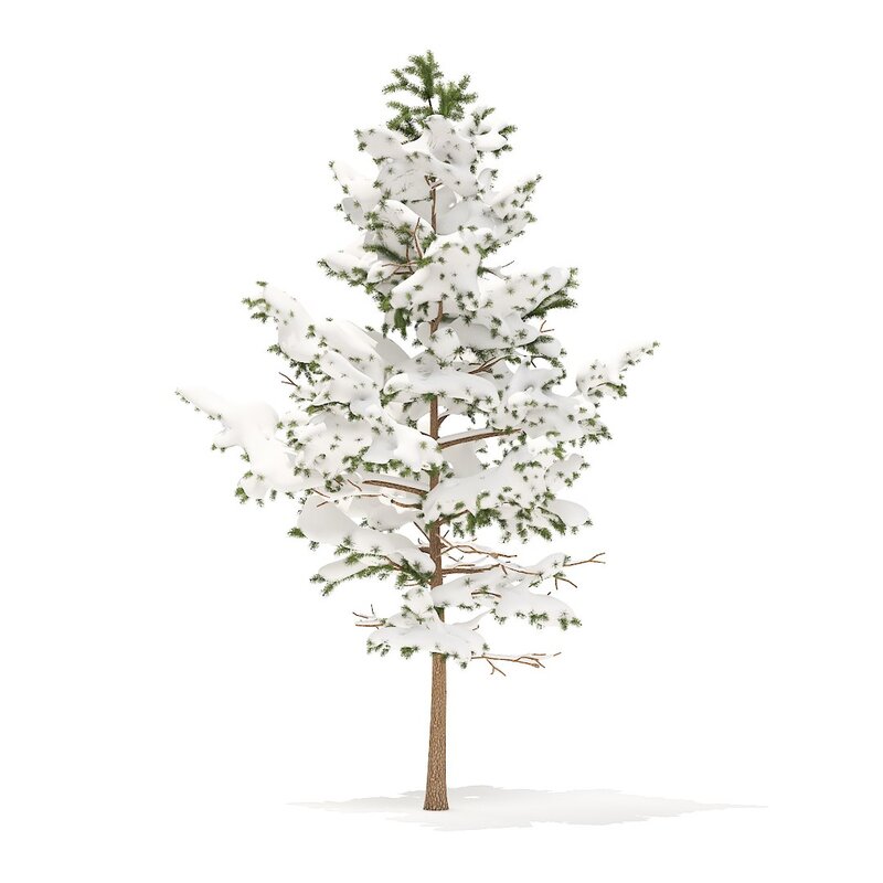 Pine tree with snow 3d model. Height: 5.1m. Compatible with 3ds max 2010 (V-Ray, Mental Ray, Corona) or higher, Cinema 4D R15 (V-Ray, Advanced Renderer), FBX, OBJ and VRMESH.