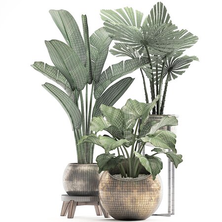Collection plants three in pots 3D model