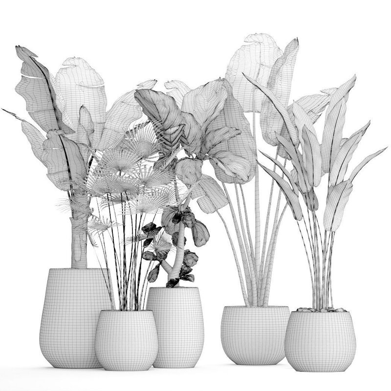 Collection plants three in pots 3D model