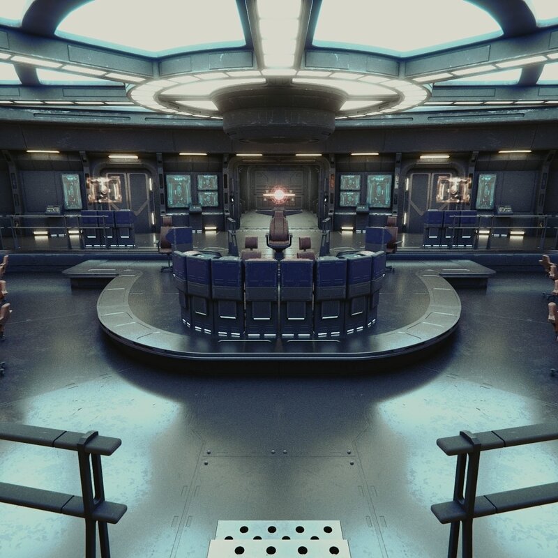A high polygon count 3D model of a starship command center, designed for use with physically based non-biased renderers like Octane and Blender Cycles. Surfaces UV unwrapped and textured in Substance Painter 2 (.spp files included with purchase). Two texture sets (grunge and non-grunge versions) included. Simply unzip the version you wish to use and place in the same root folder as the main 3D file.
